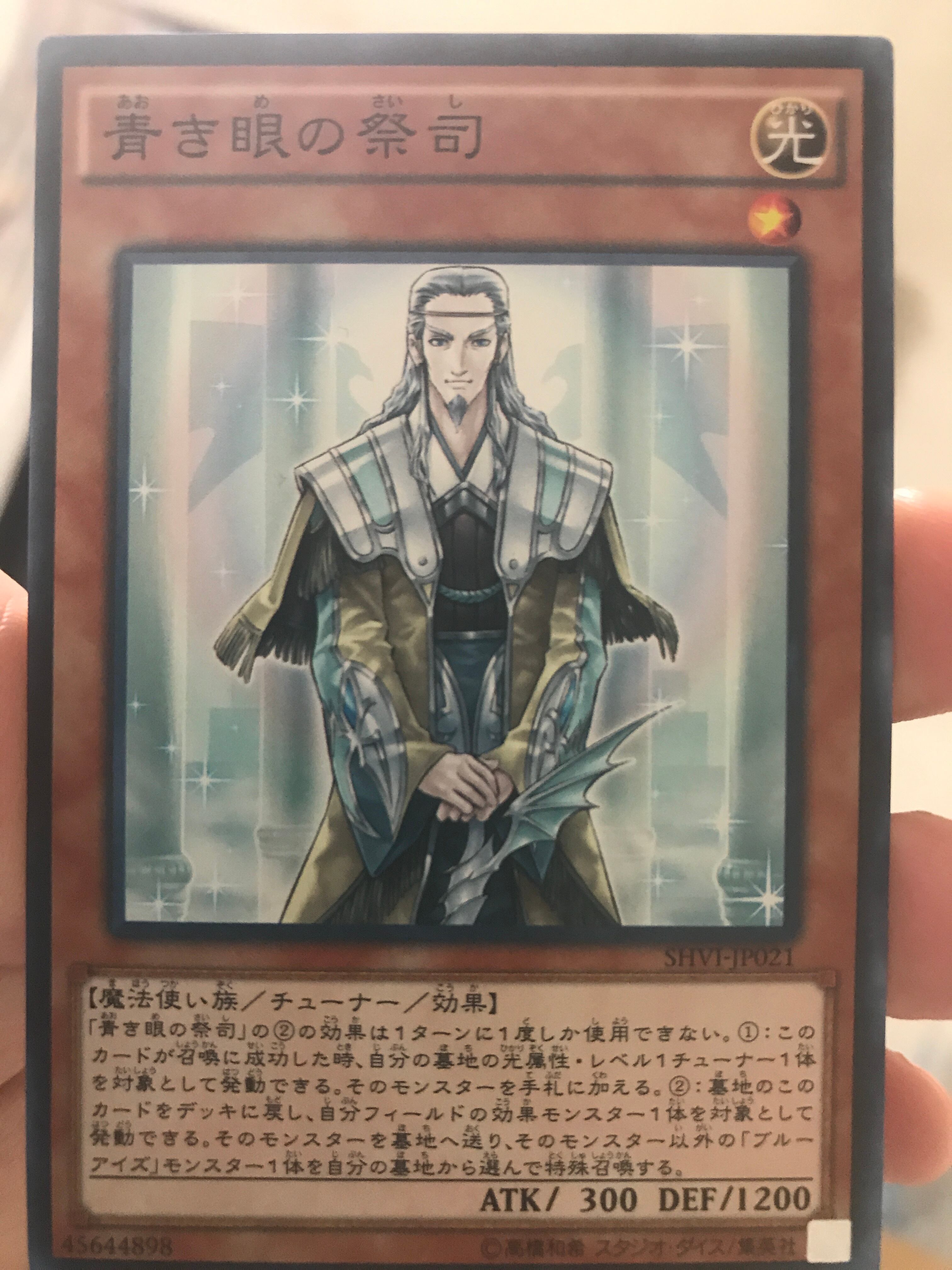 遊戯王シングルカードの青き眼の祭司になります。中古品になります。引退セット購入した時に含まれていたものになります。バスケットケースに入れていたので角スレがあるかもしれません。