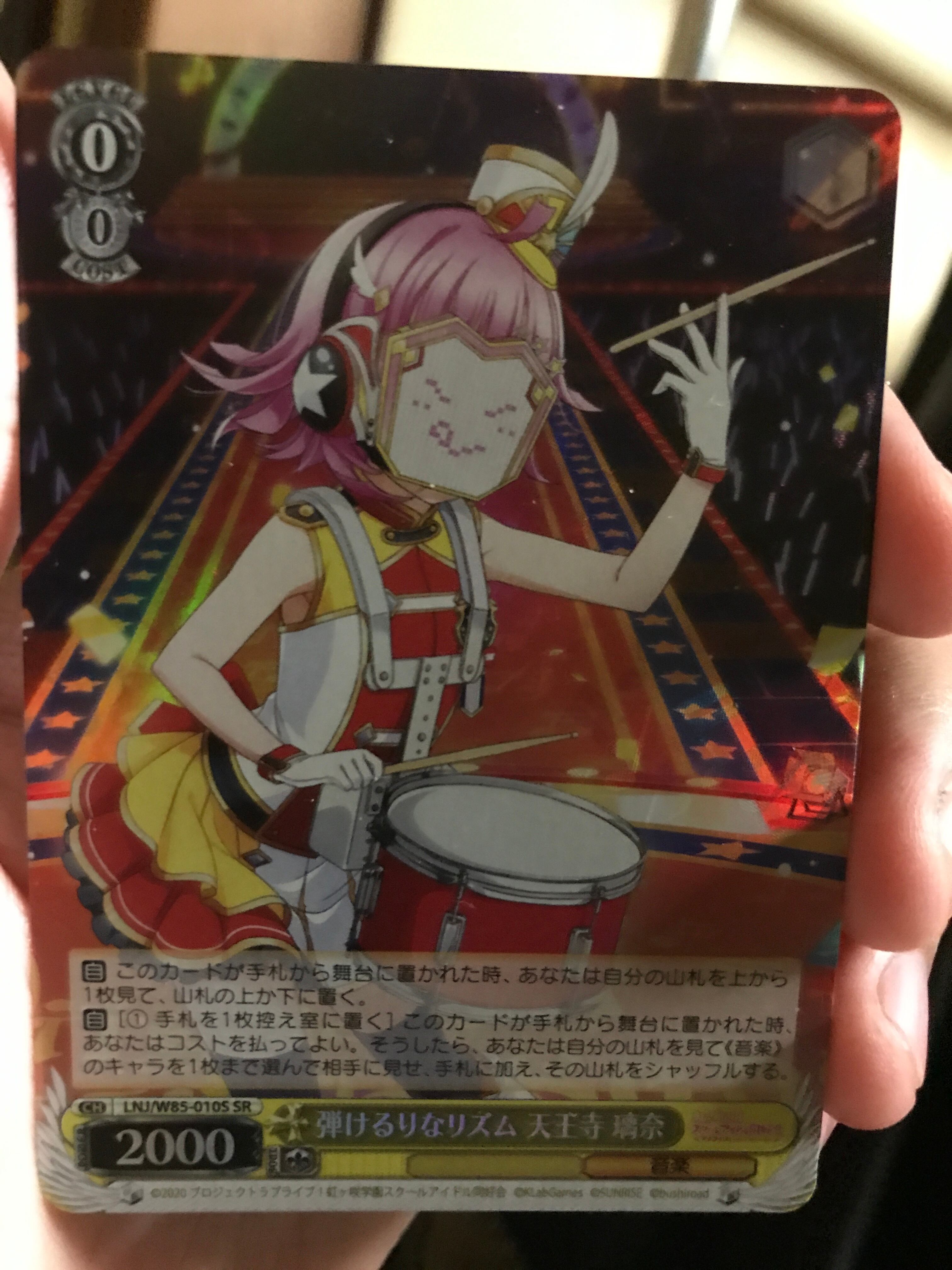 ヴァイスシュヴァルツのシングルカード。弾けるりなリズム天王寺瑠奈のSRになります。虹ヶ崎学園のブースターパック16パック買った際に引きました。未使用品です。